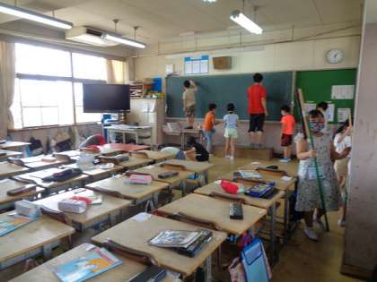 子どもたちはていねいに自分たちの学び舎をきれいにしていました。
