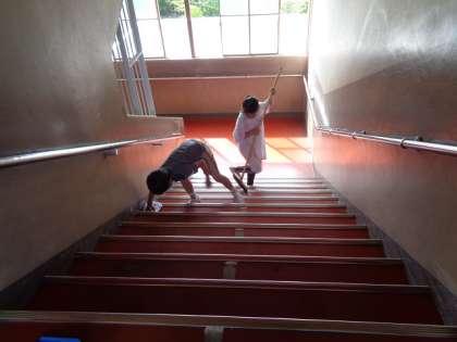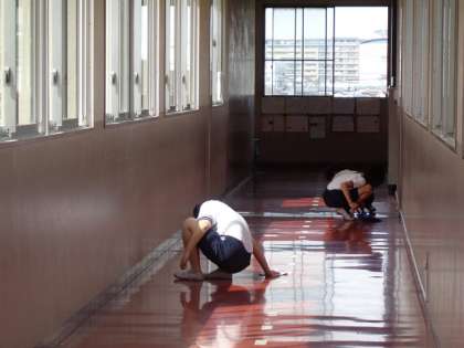 しばらくは、簡単清掃と教職員のそうじ(トイレと階段を定期的に)のみでした。