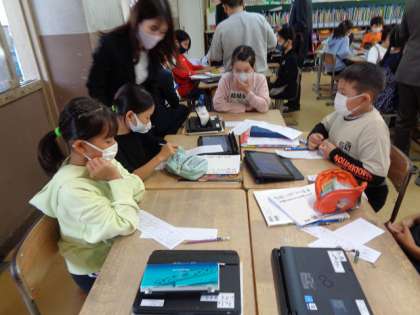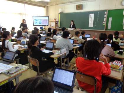 今回は、タブレットを活用しながら、研究授業にのぞみました。