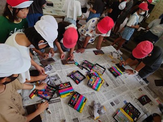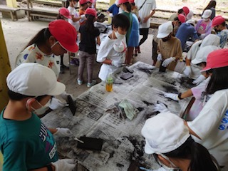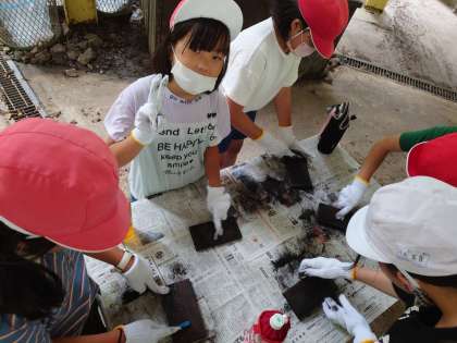 磨く磨く、焼き板磨く。そして描いている様子です。
