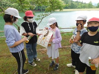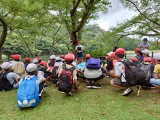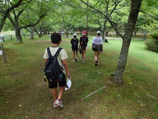 次の活動はオリエンテーリングです。まず集合して説明を聞きます。