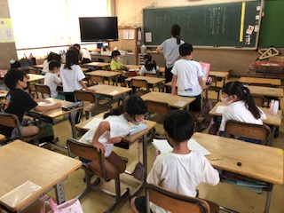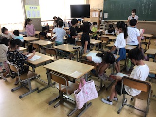 2年生のこのクラスは「ミリーのすてきなぼうし」のお話の感想文の交流です。また、相手を変えて交流と、リズムと動きのある授業でした。