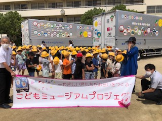 今週日曜日(11日)に万博公園お祭り広場で開催される子どもミュージアムフェスタに大きい方のトラック1台が参加して1番端に停めるそうです。ちょうど1組と2組の子どもたちの絵が載っています。入場も無料だそうです。行くと直接子どもたちのえを見ることができます♪