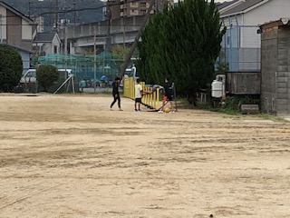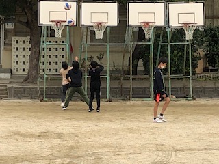 朝の運動場です。早く登校し、朝の準備を終えた人から出て来ています♪