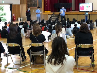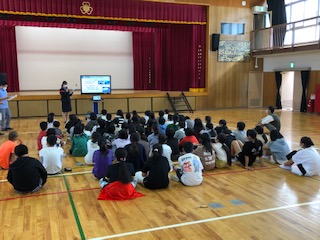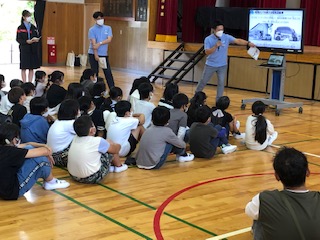 5年生は、日産自動車の出前授業で、電気自動車の学習をしました。地球温暖化を防ぐために排気ガスを出さないクリーンエネルギーの電気で動く車、環境、電気、SDGsといろいろな領域にわたる学習となり、オープンスクールで来校の保護者の方々も真剣に聞いていました。
