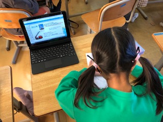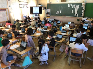 1年生の1クラスでは、国語「はたらく車」で消防車の特徴を調べてまとめています。みんなタブレットを開けて、すっかり使いこなすようになりました♪