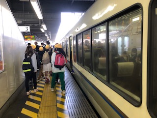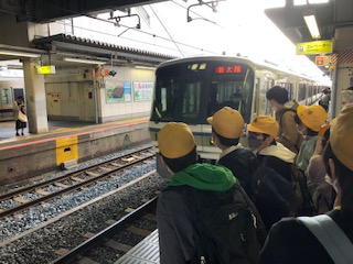 6年生は放出で、おおさか東線に乗り換えます。電車が来ました。新大阪行きです♪