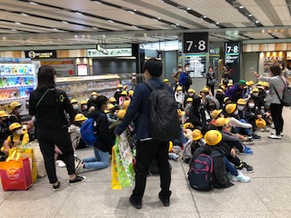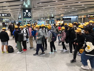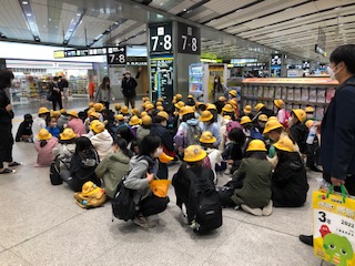 新大阪駅です。ここでは新幹線の座席順に並び替えたり、トイレ休憩を取ったり、新幹線車内での注意がありました。