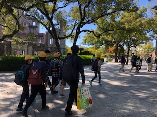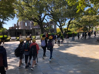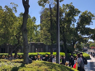 市電を降りて、原爆ドームのそばを通ります。重苦しい哀しさでいっぱいの建物です。橋の上で、この川やんな、たくさんの人が「水、みず…って…」という話が出ました。