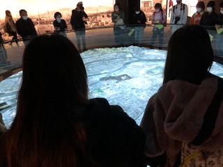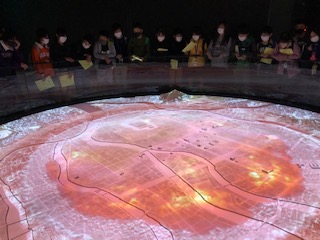 原爆資料館見学では、原爆が投下された時の広島の町を再現したものを見ました。爆発と爆風、凄まじい熱風に包まれたことがよくわかり、実際のきのこ雲の写真も掲示されていました。