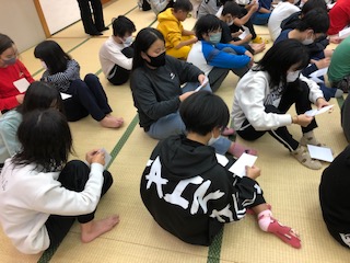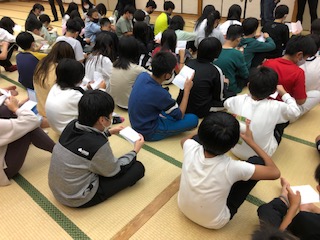 次々に手紙を開けて、みんな文面に見入ります。お家の人の思いが伝わって涙ぐむ人も・・。愛と感謝を噛みしめる静かなひとときとなりました。大阪にいるお家の方たちがここでそばに寄り添っているようなしっとりとした親子、が見えました!