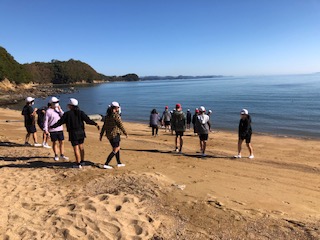到着です。バス内で寝ていた人が多かったのですが、ぼんやり降りてみると、きれいな海があり、急にテンションが上がります♪