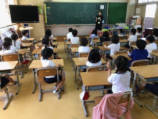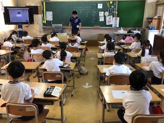 1年生の授業は3クラスとも国語、ひらがな「さ」を学んでいるクラスでは、「さ」が入った言葉さがしや名前さがしをしています