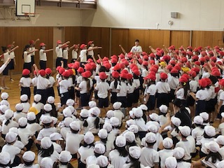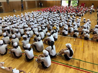 全体練習では、開会式の流れと応援合戦を赤、白と行いました。そして座ると、やはり並びがきれいです♪