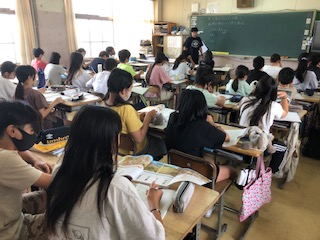 6年生の1クラスです。社会の学習は日本の歴史、今日は縄文時代について調べ学習を班でするようです。