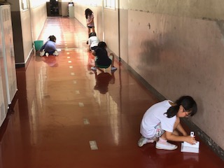 2年生の廊下掃除、おしゃべりをせず、心を込めてお掃除する姿がすばらしいです♪