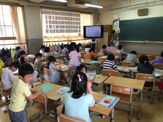 1年生の教室です。どのクラスも算数、足すと10になるペアをしっかり頭に入れます。