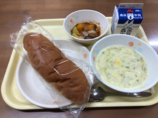 イタリア風の給食です。ラタトゥユは夏野菜がたっぷり入っています。クリーミースープもなかなか具沢山でまろやかテイストが美味しかったです♪