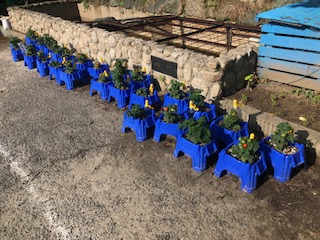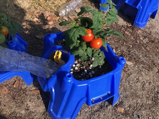朝陽を浴びてつややかに輝くのはミニトマト、2年生が丹精込めてお世話してきたミニトマトが初夏の実りを迎えはじめました♪