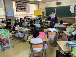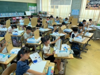 2年生の1クラスです。雨だれがスジを描くようなデザインに取り組む様子、そして出前授業で鍵盤ハーモニカを学習している様子です。どの1つも真剣勝負の子どもたちです♪