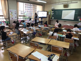 1年生の2クラスです。1クラスは図工で折り紙を切って模様を作ります。1クラスは算数です。足し算の表で足す数と足される数を明らかに、わかりやすい表です。