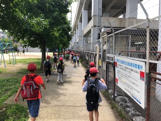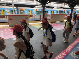 学校へ戻る途中、京橋ではUSJ行きのスーパーマリオトレインと会いました♪ そして帰りの電車の中は、とても静かで、3年の子どもたちの素直さときちんとやりきろうとする力が表れていました。帰途は蒸し暑く、「家に帰って寝た〜い」の声も聞こえました。3年生、伸び伸びとイイ一日を過ごしました♪♪