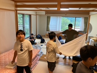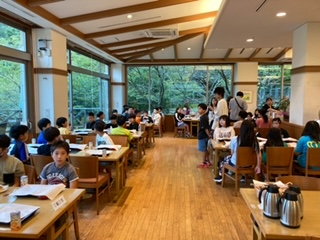 部屋の片付けをして、みんな5分前にレストランに集合できました。