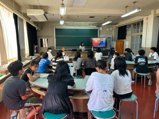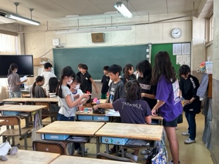 6年生、1クラスは理科室です。水溶液の学習のようです。1クラスは学活、月末に予定されている灰小まつりのお店のプランニングを話し合っています。楽しそうです。