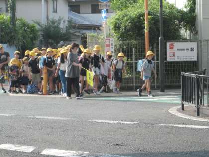 朝の登校では、短い時間に集中して子どもたちの登校班が大きな隊をつくります。朝の早い時間に旗持ち当番や見守り隊で子どもの安全な登校を見守っていただいており、有難く存じます。今日の児童集会では、子どもたちには、旗持ち当番や見守り隊は「横断歩道渡らせ係」ではなく、みんなが安全に登校してることを見守るお役目です。朝早くから、昼の外に出るのが危険なほど暑い日にも立ってくださることに、心から感謝が湧いてきます、というお話を朝の児童集会で行いました。