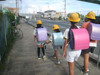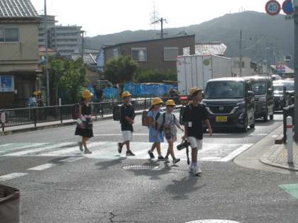朝から蒸し蒸しする日が続きますが、時折心もち涼しさを感じる風も通り、わずかな変化が見えます。昨日今日と、朝と20分休みに外遊びができました。朝登校時の様子、自転車の通行が多い中、珍しく隙間でパチリ。また、手つなぎホッコリ場面もパチリ、です。