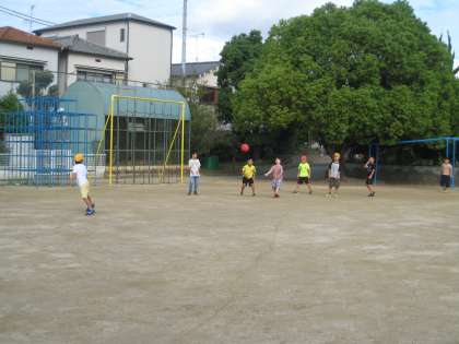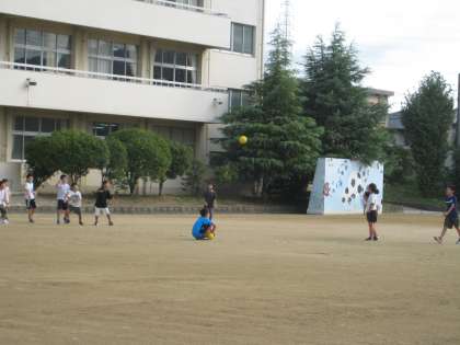 朝の運動場は少しずつ外に出る子どもの数が増えています。ドッジボールは4年と2年、そしてブランコも気持ちよさそうです。