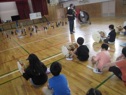 3年生は人権教育の学習で韓国・朝鮮の楽器、チャンゴの出前授業がありました。最初にお話を聞いて、その場でリズムを取る練習、そして順番に実際にチャンゴを叩いてみます。初めての楽器にドキドキワクワク♪そしてリズムにあわせた太鼓打ちの楽しさをそれぞれが味わっていました。