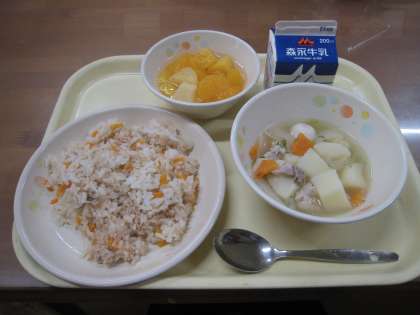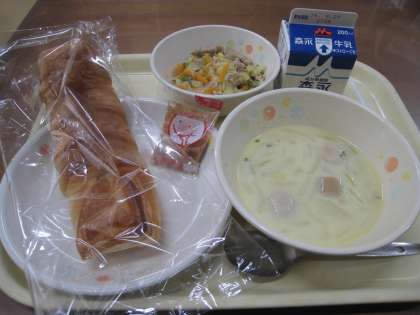 昨日と今日の給食です。毎日とても美味しいのですが、昨日はデニッシュパンが、今日はフルーツミックスが各教室で殊に大ヒットだったと思います♪