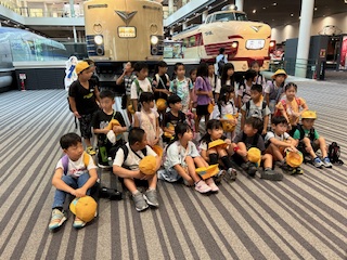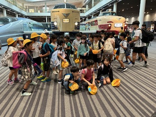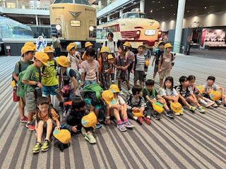 鉄道博物館に着き、クラス写真撮影のため各クラスが並ぶ様子です。