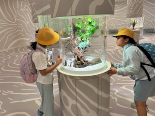 幻想的な宇宙や自然を私たちに伝えてくれているようなコーナー、日常では見ることができない、周りの色と同じ色調に変化して隠れる忍者のような生き物がいます。そしてきれいなホワイトタイガーに出会い、その大きさにびっくりです。