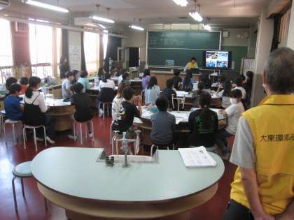 5年生は、オープンスクール2日目に環境学習で、大東環境みどり会の方々に環境を守ることについて教えていただきました。手づくりの竹細工や冊子などがあり、自然を身近に愛おしんで活動されていることが伝わってきました。自然環境を大切に守って生きていくことはこれからの私たちの大きな課題になります。子どもたちはたくさんの気づきを得たことと思います。