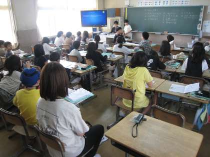 4年生の1クラスでは、紹介したいお祭りを細かく調べてみんなに紹介する学習をしていましたが、丁度発表の時間です。それぞれが自分で一生懸命調べてまとめていただけに、発表を真剣に聞いています。