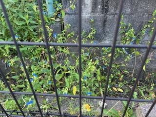 学校のフェンス辺りに愛らしい花を見つけました。小さい花がたくさん咲いていて、接写してみると青いチョウチョのような可憐な花です。「つゆ草」ですね。今度子どもたちにも聞いてみようと思います。きれいですが、調べると軽・中程度の毒があると書いてあり、触らないように見るだけにしないといけないお花です。