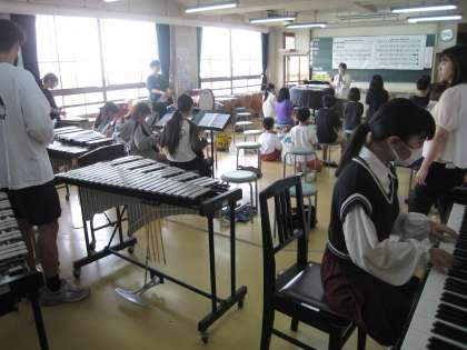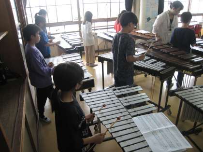 5年生の1クラスが音楽室で発表会へ向けての授業を受けています。それぞれのパートを熱心に練習していて、気を抜く子がいません。最後はそのパートを合わせて演奏をしてみました。それぞれが前向きに意識を持って主体的に学ぶ、張りのある様子をみることができました。