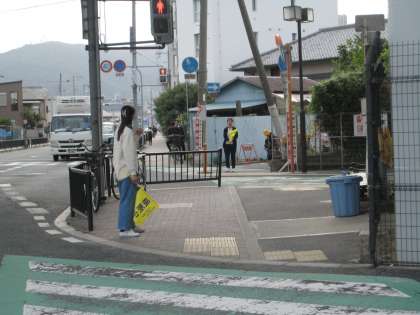 朝の登校では、最初の登校班が来る前には旗持ち当番の保護者や見守り隊が立ってくださっています。おつかれさまです!
