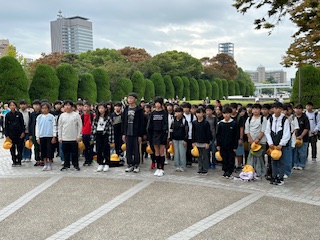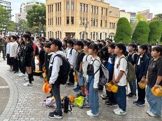 次は1分間の黙祷を捧げました。修学旅行前に被爆者の身内からの講演を聞いたこともあり、みんなの態度は真剣で重々しいものでした。