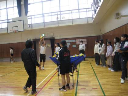 6年生のアクセスプランの後半はクラブ見学です。体育館の中で活動している3クラブを撮りました。バレーボール部、バスケ部、バドミントン部です。