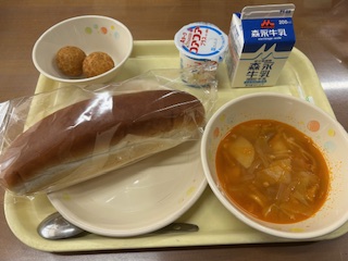 ミネストローネスープは、根菜類でボリュームもあり、イタリアンな美味しさでした。カレーボールは初めてですが、カレー風味が食欲をそそり、衣の口当たりもカラッとこれからも期待の一品です。甘みのあるハニーパンはソフトで食べやすい美味しさでした♪