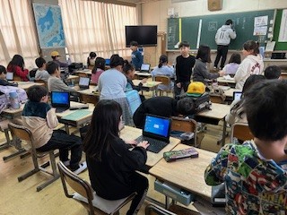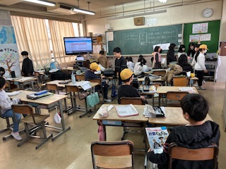 朝の3年生の教室です。ほぼみんな登校し終わって、先生の黒板の連絡を見たり、タブレットを開いたり、提出物を出したり・・自分のペースで朝の準備をしています。