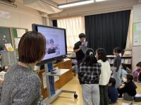4年生が、フランスと回線をつないで、英語での国際交流をしました。英語指導の先生や...