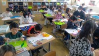 国語の時間、本の読み聞かせをしていました。今日は昔懐かしの「舌切り雀」。