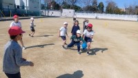 今日はとても寒い一日。運動場では寒さに負けずボール運動をしていました。