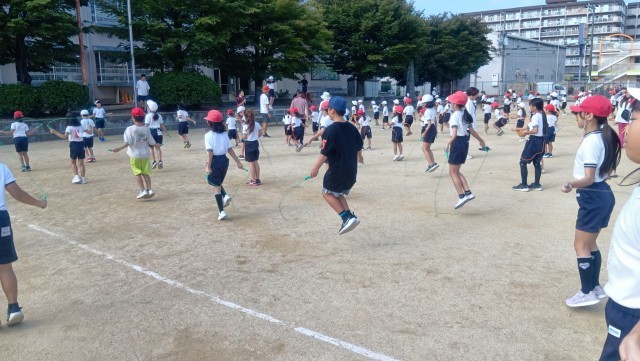 今日の朝の運動(縄跳び)のめあては「リズムよく前跳びをする」です。毎回めあてが変わります。少し練習しただけでも随分変わります。