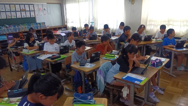 理科の「生命の誕生」の単元。各々のタブレットPCで動画を見た後分かったことをクラウド上で交流しています。