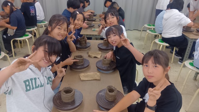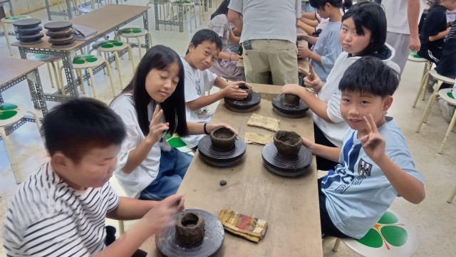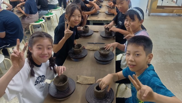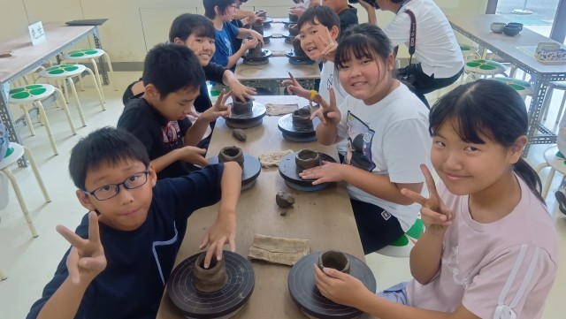 林間学習 陶芸体験中
